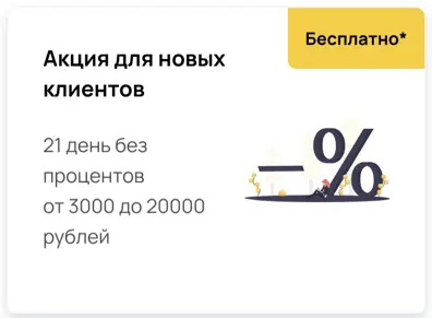 Акция для новых клиентов: от 3000 до 20000 рублей, 21 день без процентов. По факту 14 дней можно пользоваться деньгами без процентов. Если хотите дальше использовать займ, ставка становится минимальной, погашение разбивается на еженедельные платежи в течение 26 недель. Можно закрыть займ досрочно в любой момент.