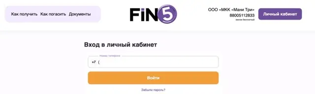 fin5 займ личный кабинет и его возможности